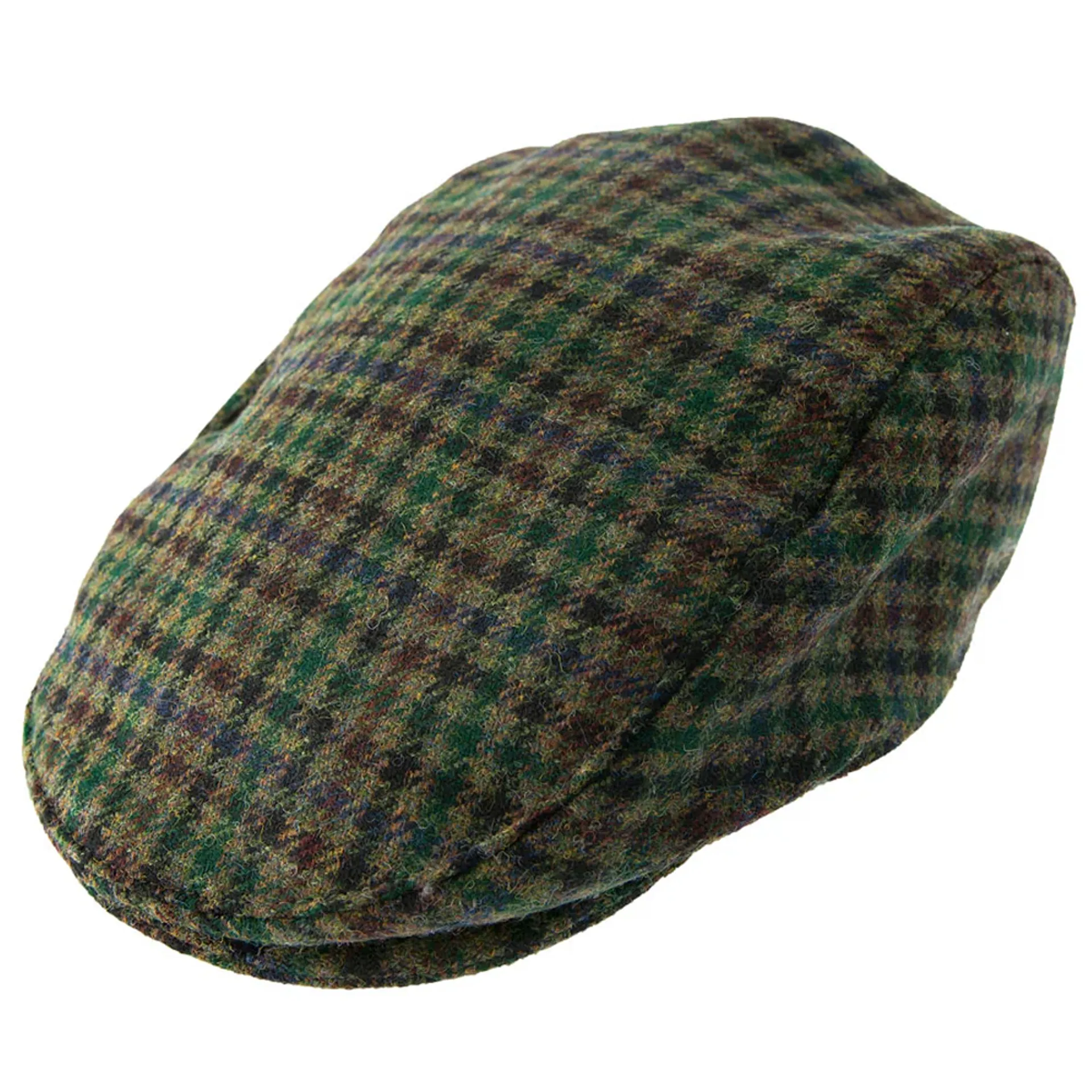 A classic flat cap made from 100% wool Abraham Moon dogtooth tweed.