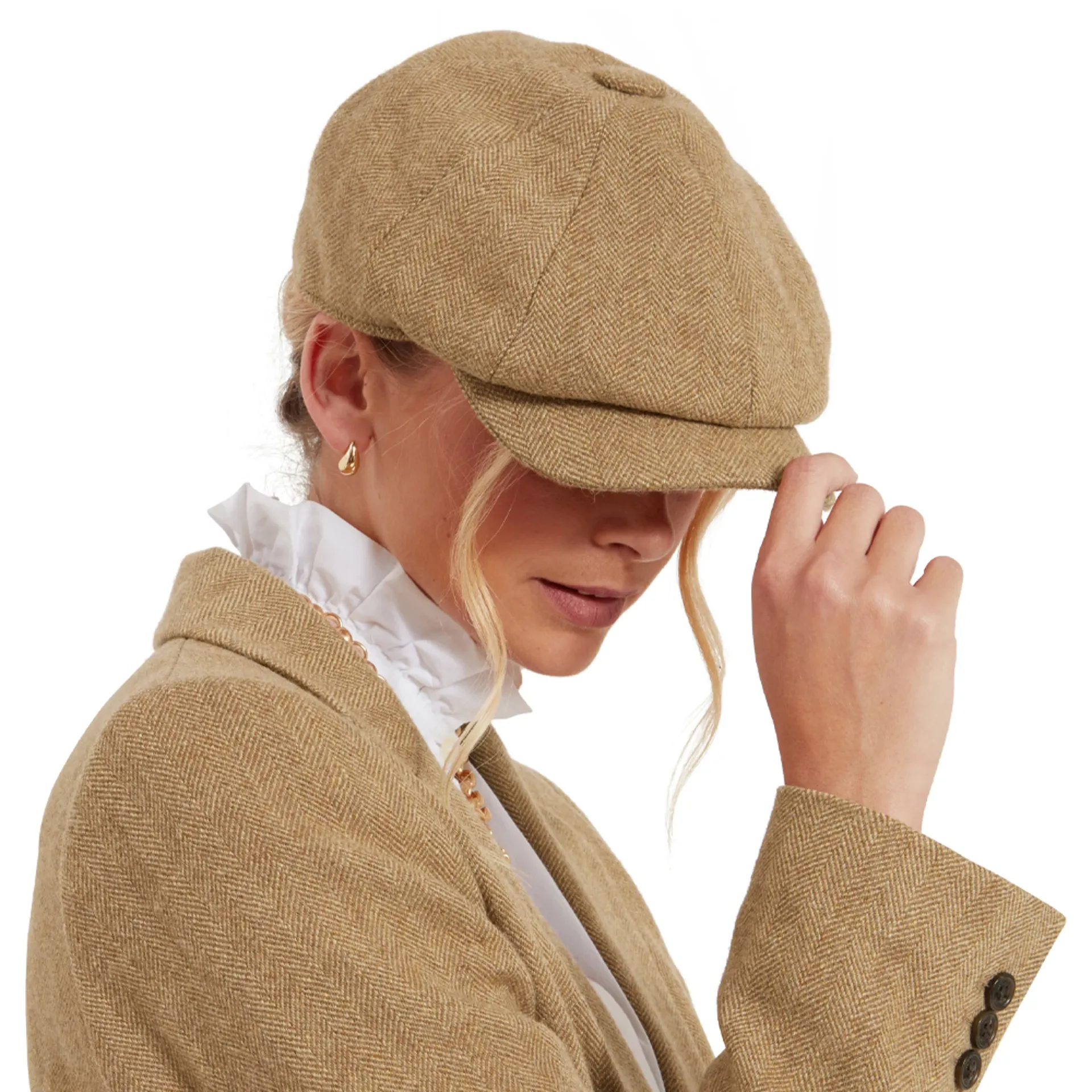 Schöffel Ladies Tweed Newsboy Cap in Oak Herringbone