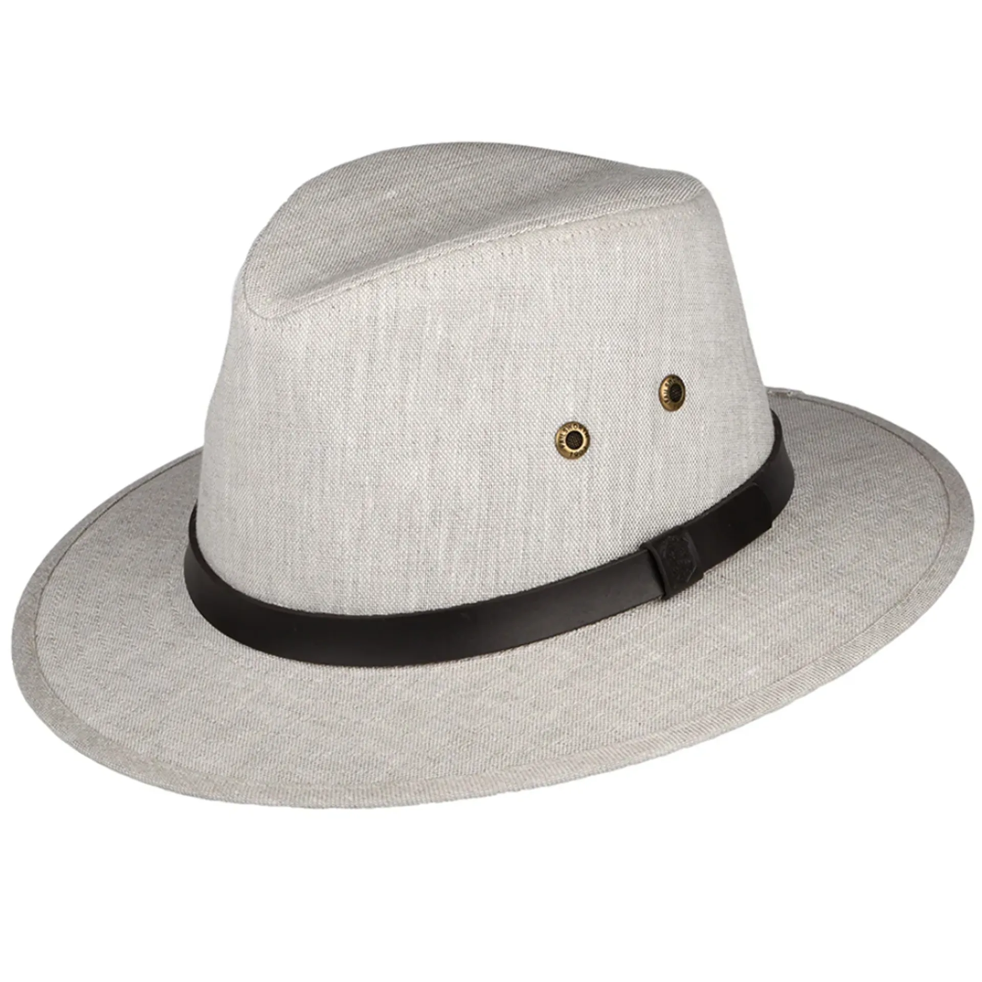 The Failsworth Hats Irish Linen Safari Fedora Hat in natural is a lovely linen design, a dependable, sturdy hat. Perfect for the warmer months, whether you are going abroad, or staying local, this is the hat for you! Made from 100% Irish linen, featuring a faux leather band framing the hat, and eyelets on either side for maximum ventilation. Versatile, this hat is both showerproof and UPF 40+.