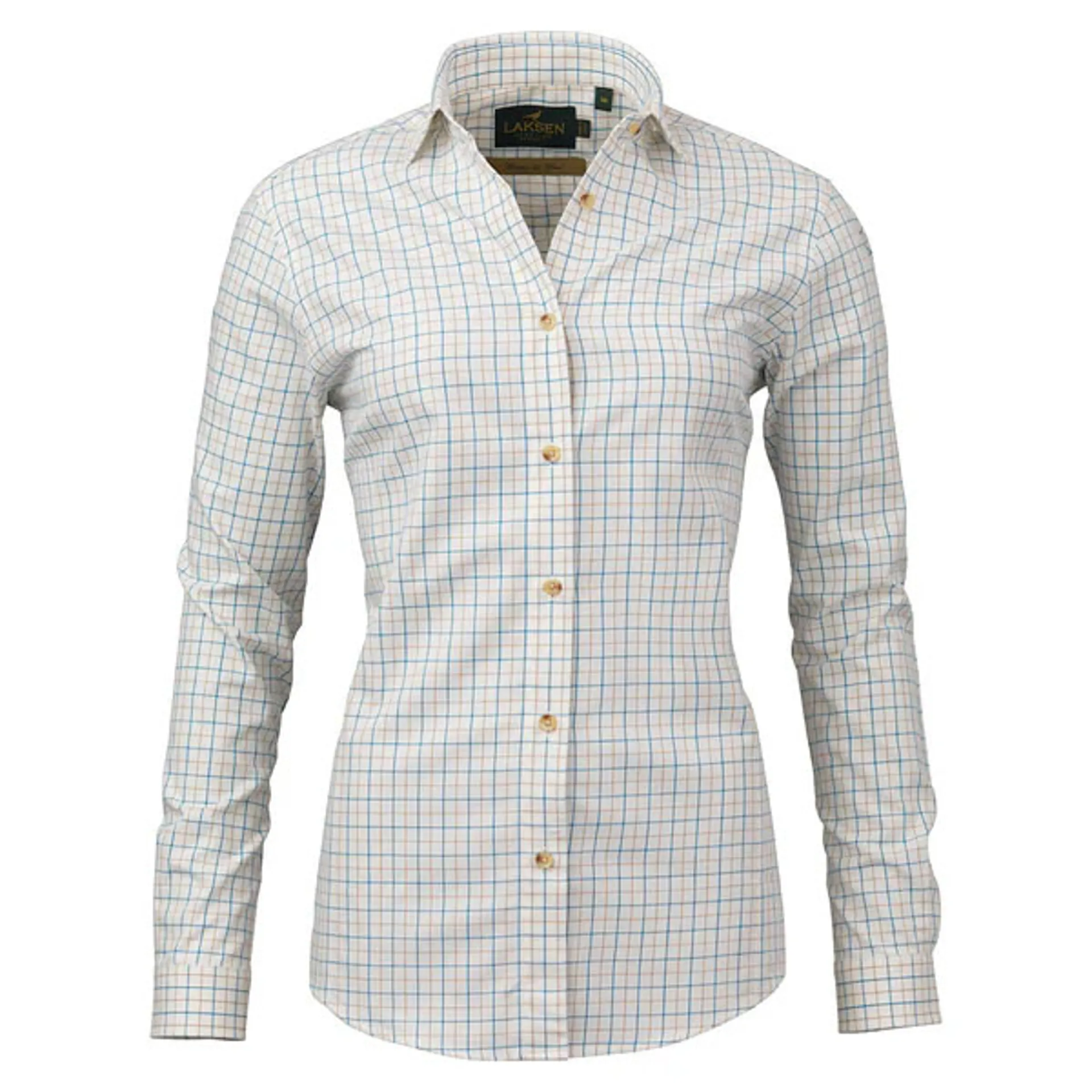 Laksen Amanda Ladies Cotton Wool Shirt in Sand and Deep Ocean