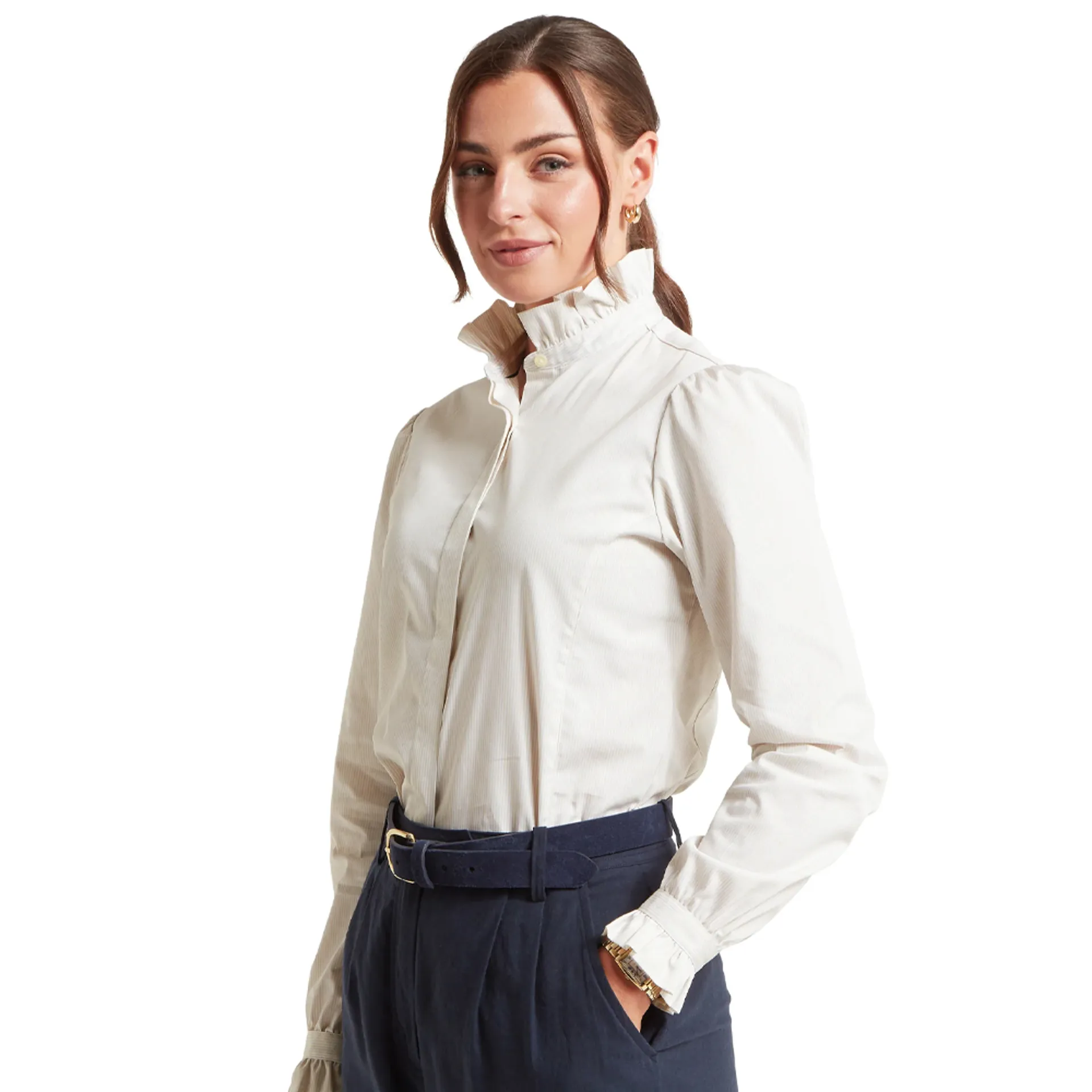 Effortlessly stylish and with pie-crust cuffs and collar to complement its slim fit, the Fakenham is a beautifully designed women's shirt made of cotton poplin. Soft on the skin, it has a concealed front-button fastening and promises to elevate any outfit with subtle sophistication.