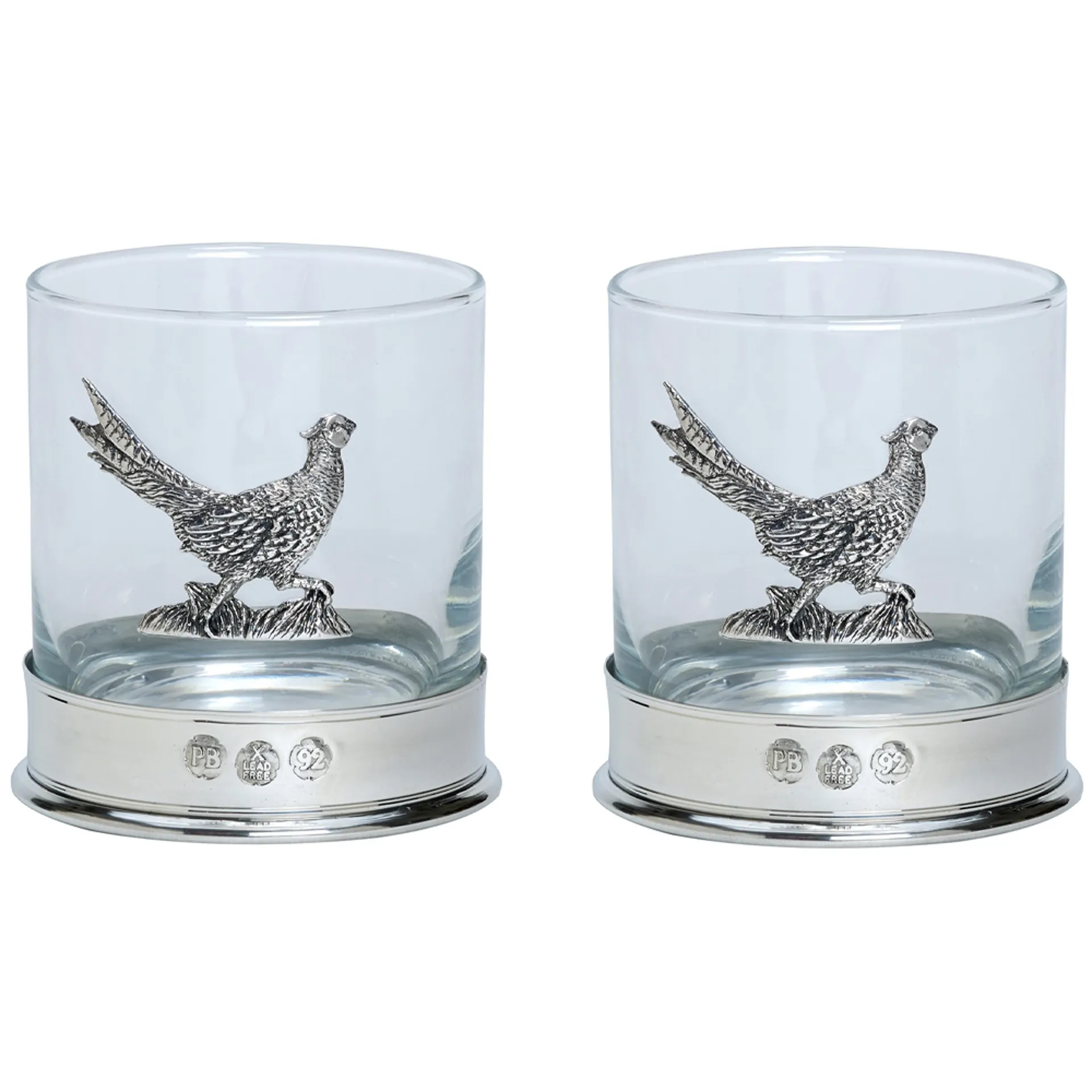 Farm Cottage Brands Set of 2 Pewter Pheasant Whisky Glasses