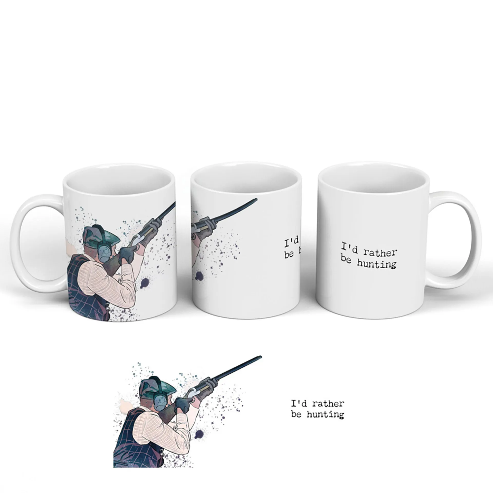 Question(s) answered about Vivid Squid 'I'd Rather Be Hunting' Ceramic Mug in White
