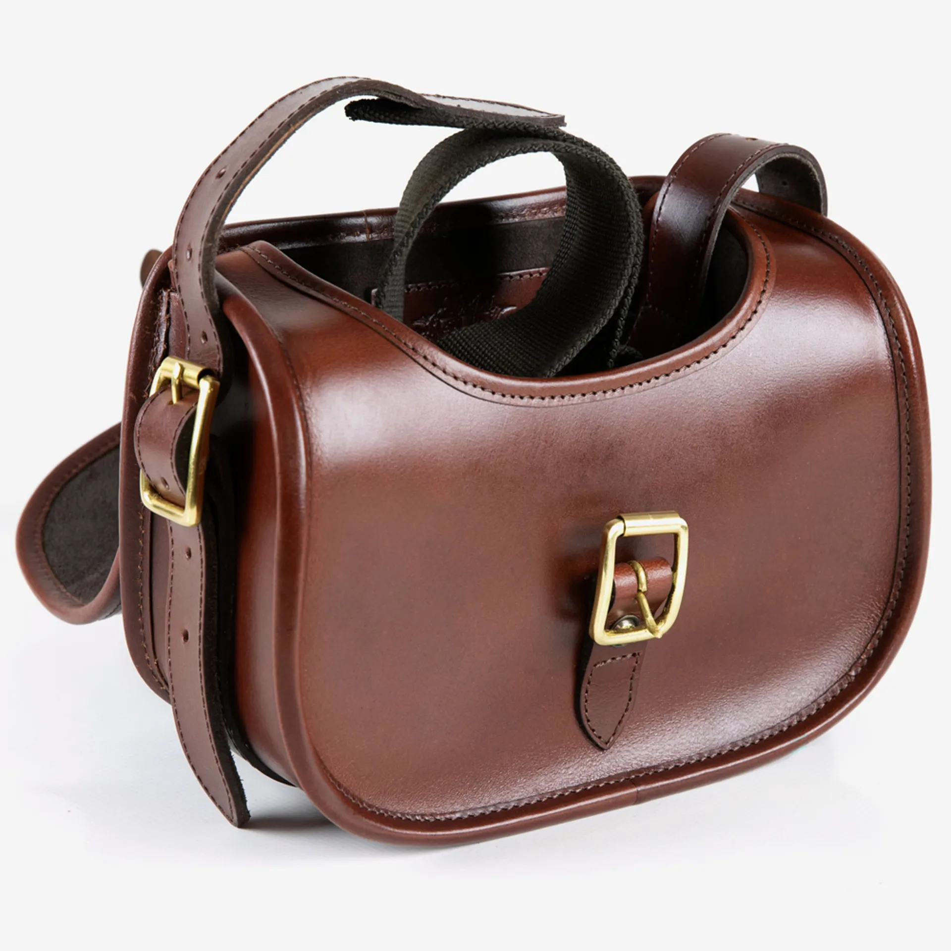 The leather is cut to our own pattern that gives the bottom of the bag a slight pendulum shape ensuring that the optimum quantity of cartridges are contained within a smaller bag and that they rest snugly together.