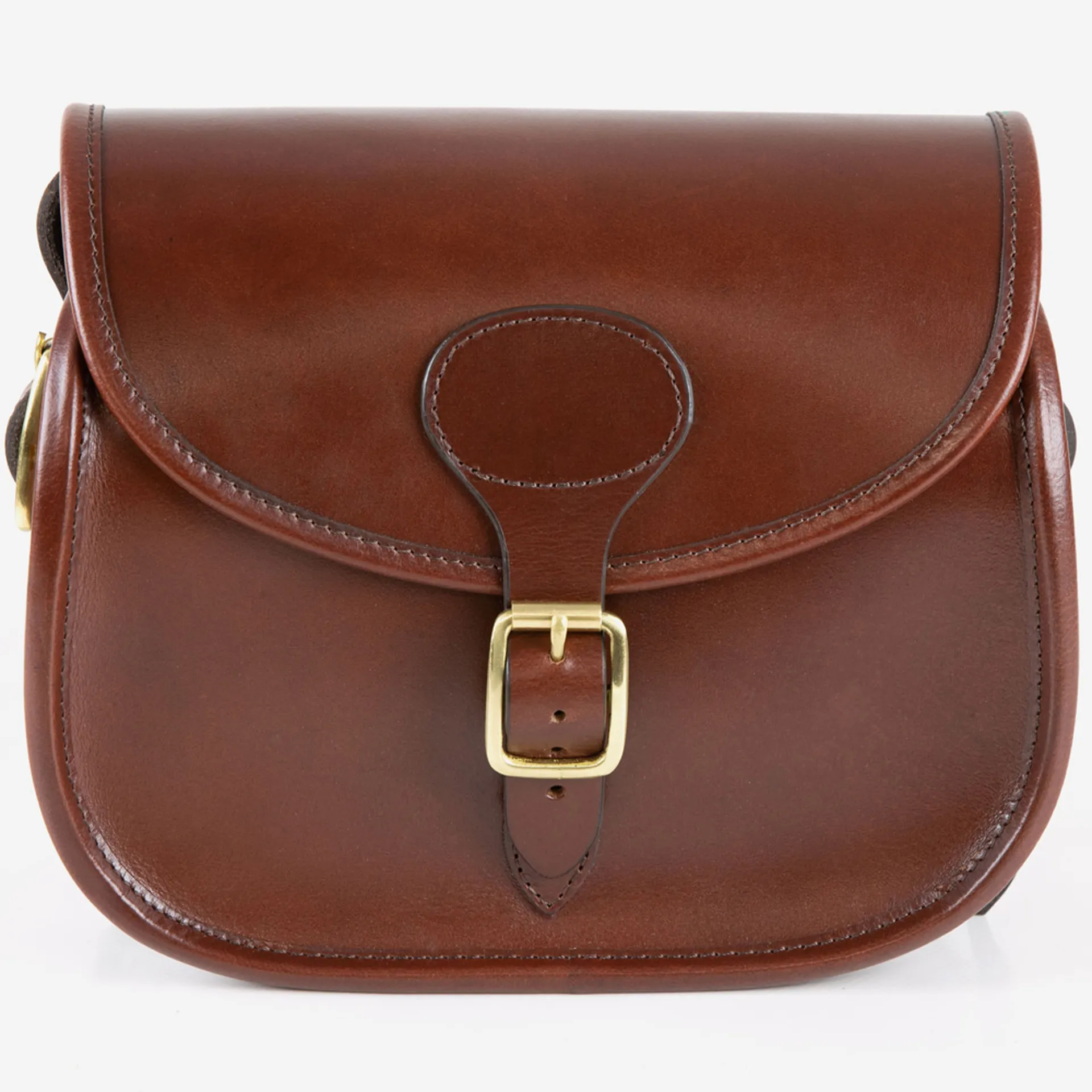 This classical Cartridge bag is crafted from Dark tanned leather hide. And stitched with strong, oiled thread.