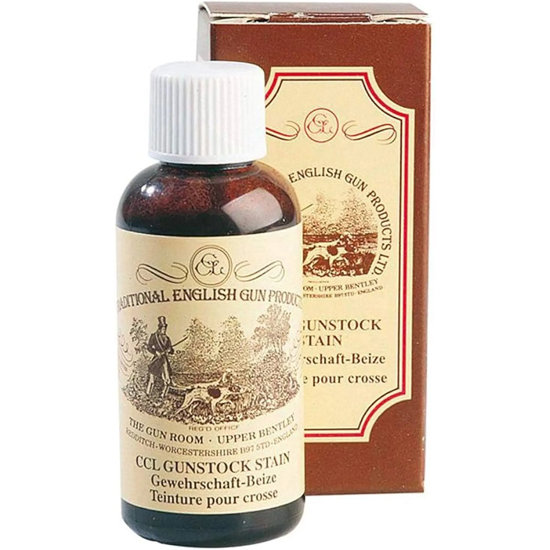 CCL Gunstock Stain to darken light coloured wood. A Red/brown water based stain to darken very light coloured gun stocks before oil finishing or polishing. Instructions in multiple languages included.